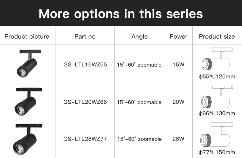 LFZ Series 48V Zoomable LED Magnetic Track Light