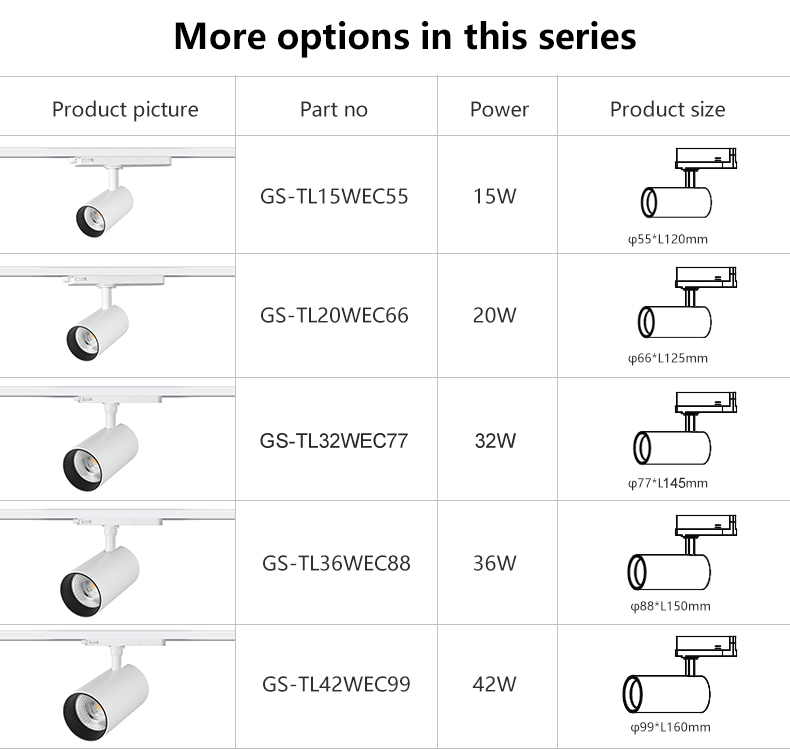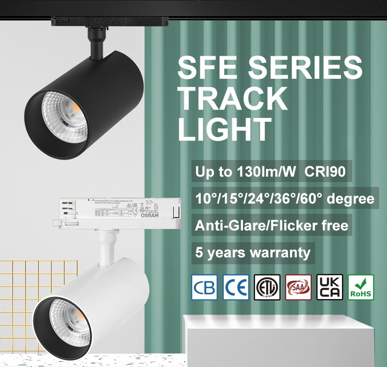 SFC Series Led Contour Track Light 20-42W 17-35°/25-36°/ 40°/ 45°/50-60°/68°