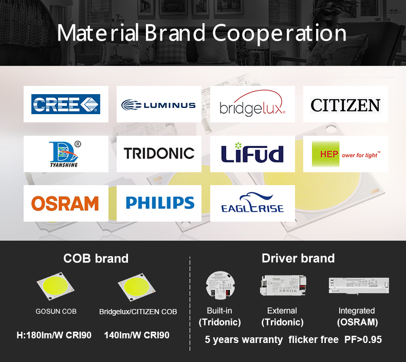 • Beam angle: (Lens15°/24°/36°/60°)(Reflector: 30°/40°/60°)