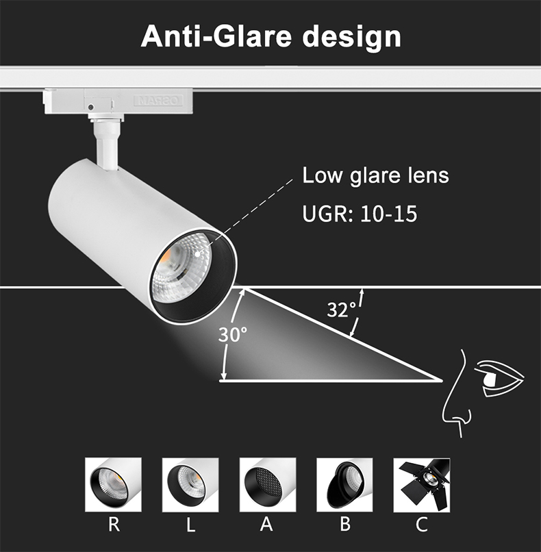 SFC Series Led Contour Track Light 20-42W 17-35°/25-36°/ 40°/ 45°/50-60°/68°