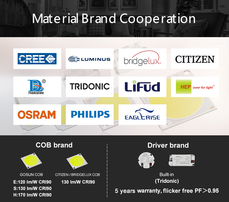 • Beam angle: (Lens15°/24°/36°/60°)(Reflector: 30°/40°/60°)