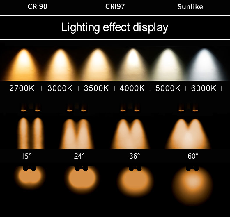 • Beam angle: (Lens15°/24°/36°/60°)(Reflector: 30°/40°/60°)