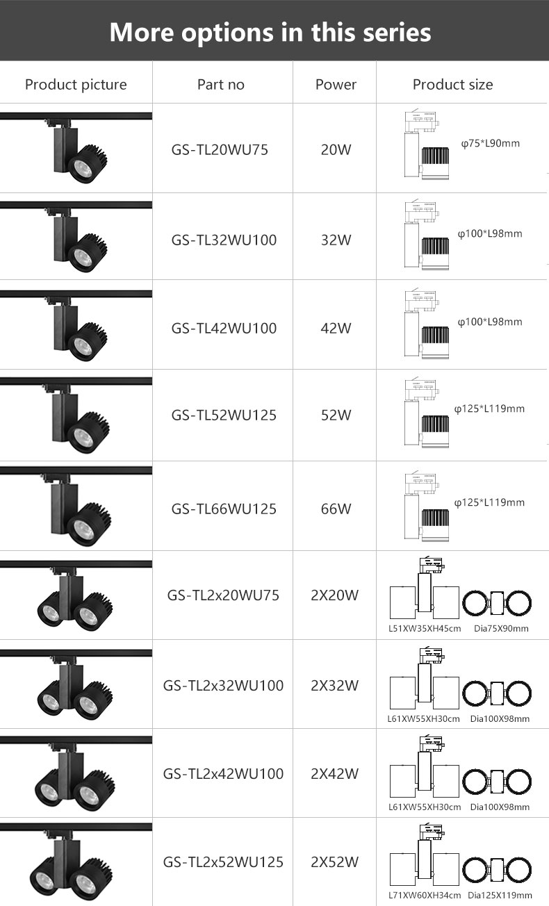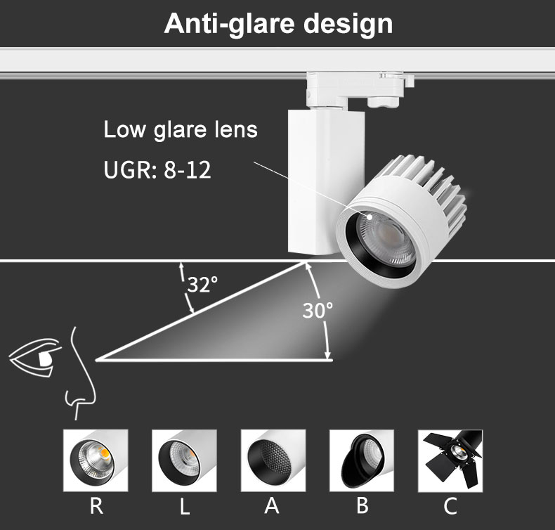 SFC Series Led Contour Track Light 20-42W 17-35°/25-36°/ 40°/ 45°/50-60°/68°