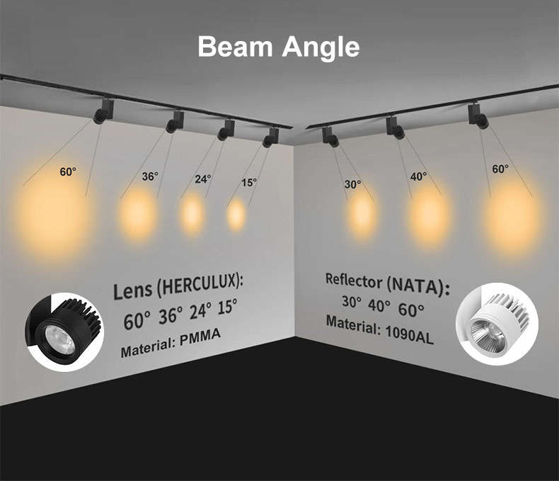 • Beam angle: (Lens15°/24°/36°/60°)(Reflector: 30°/40°/60°)