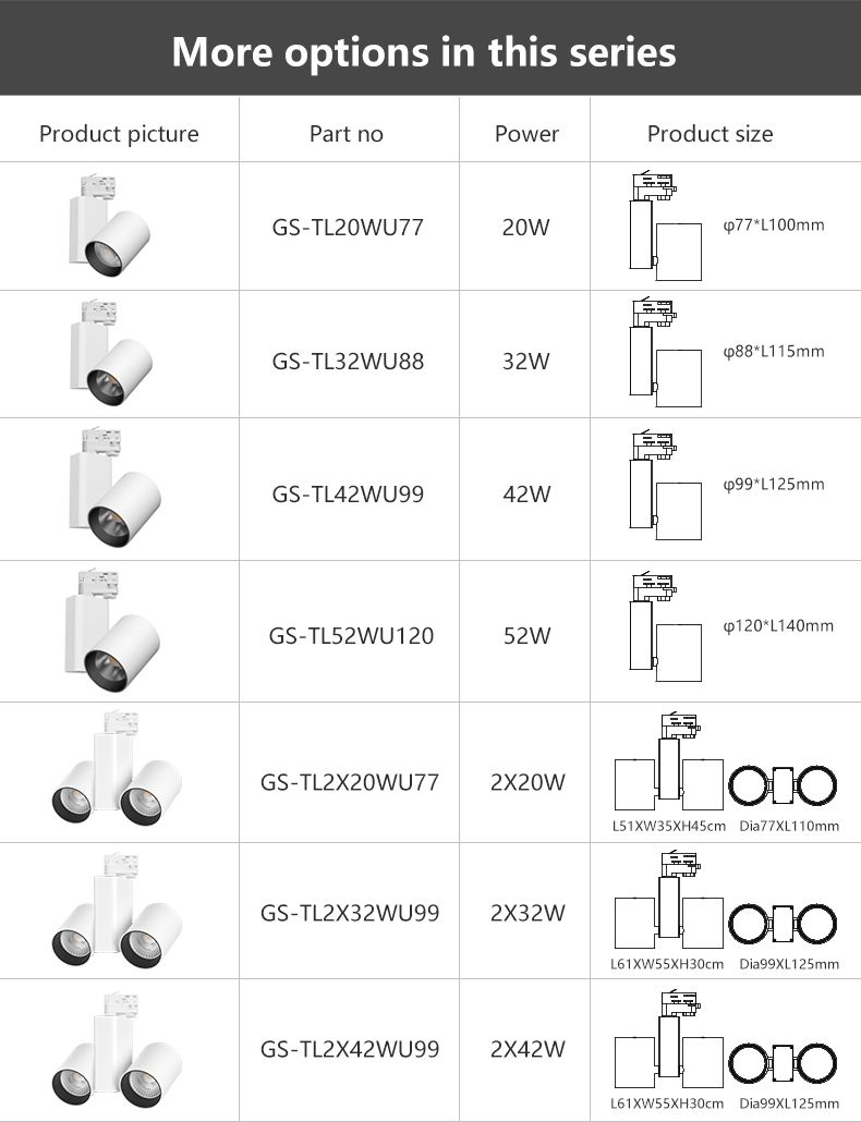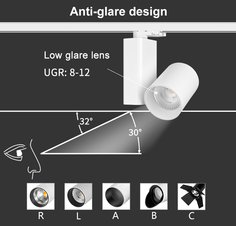 SFC Series Led Contour Track Light 20-42W 17-35°/25-36°/ 40°/ 45°/50-60°/68°