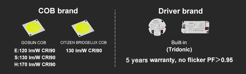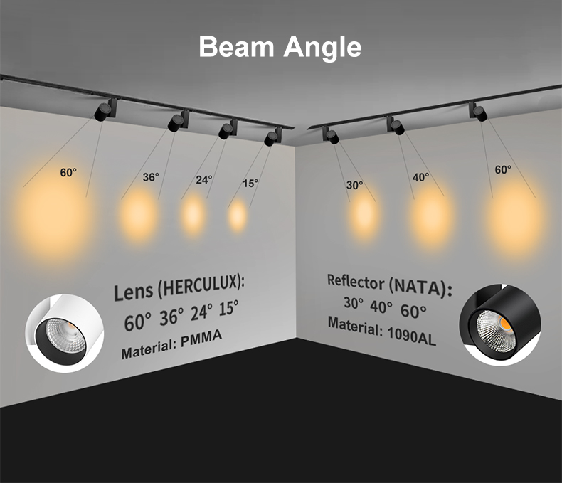 • Beam angle: (Lens15°/24°/36°/60°)(Reflector: 30°/40°/60°)