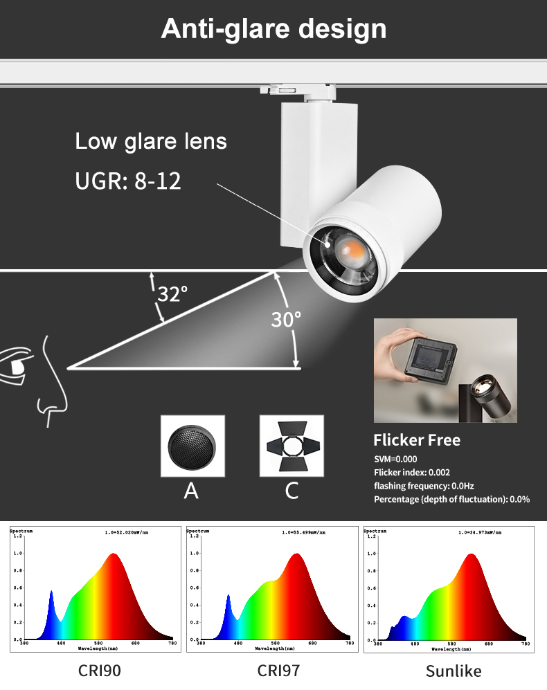 SFC Series Led Contour Track Light 20-42W 17-35°/25-36°/ 40°/ 45°/50-60°/68°