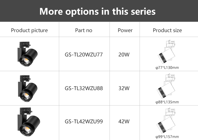 UFZ Series LED Track Light Zoomable